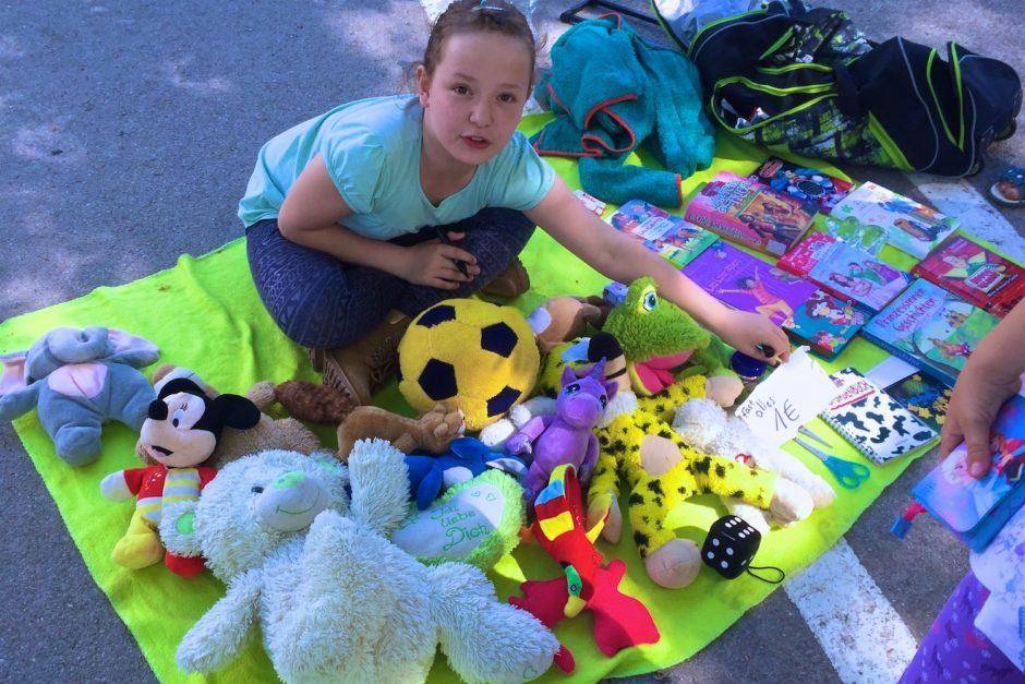 Дворовый блошиный рынок (Hofflohmarkt) на школьном дворе.