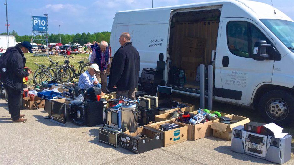 Передвижная пленочная киноустановка, транзисторный радиоприемник, осциллограф, титан и музыкальный центр, мониторы и игрушки – всё «made in Germany». Блошиный рынок (Flohmarkt) на пустыре возле выставочного комплекса «Messe München» в районе Мюнхен-Рим.