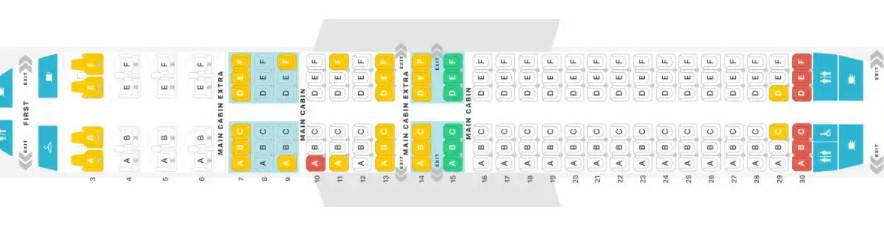 Эконом класс представлен местами в рядах с 6 по 28. Здесь есть как очень комфортные, так и совсем неудачные сидения, поэтому рассмотрим каждый ряд подробнее: