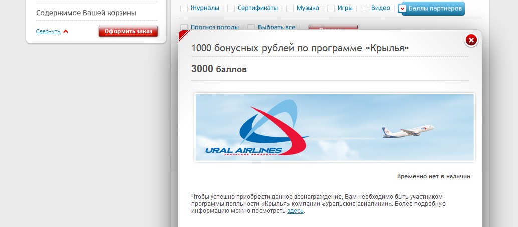 - совершить покупку многочисленных товаров на официальном сайте авиакомпании «Уральские авиалинии».