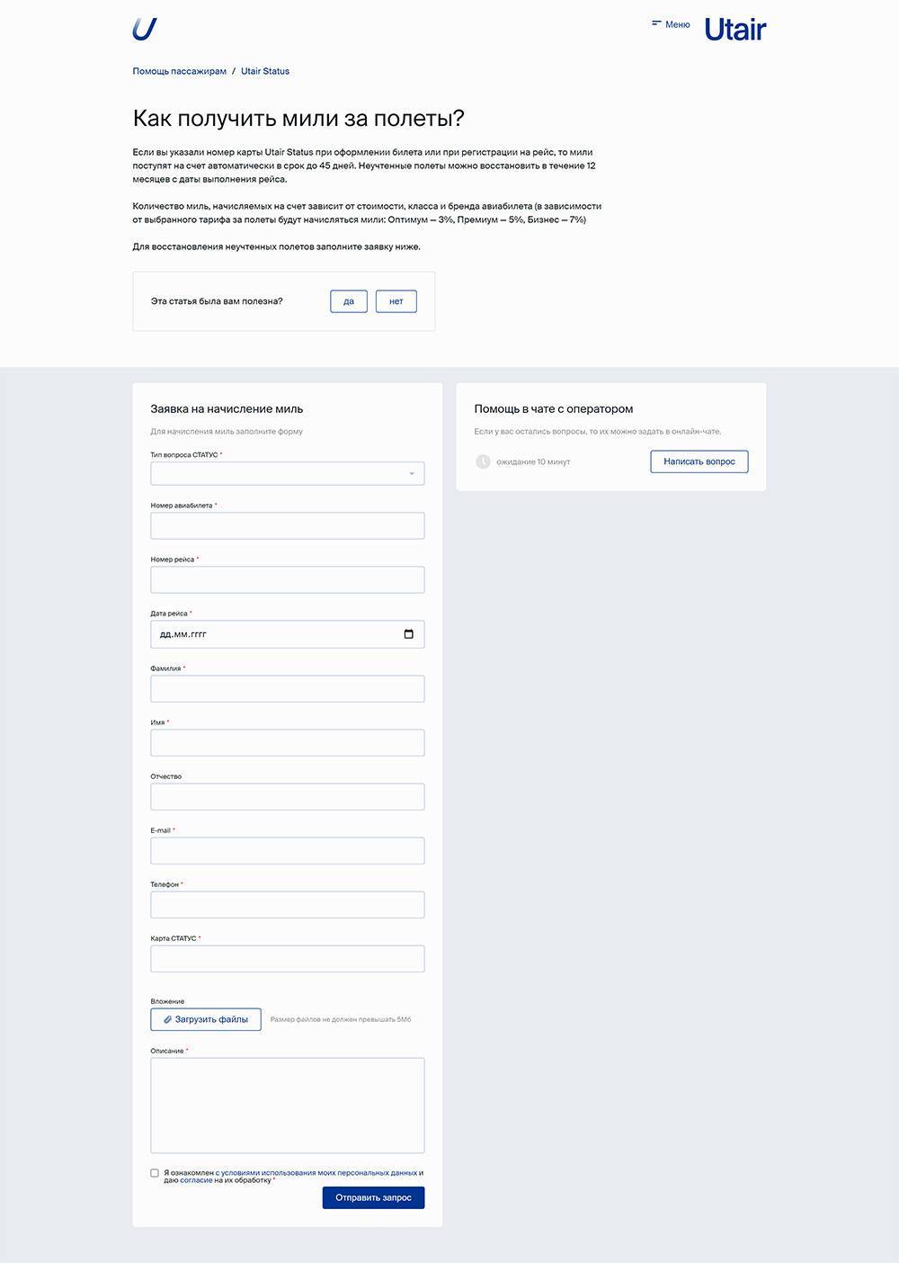 Регистрация. Чтобы начать копить мили, нужно зарегистрироваться в программе Utair Status. За это участник получает 300 приветственных миль.