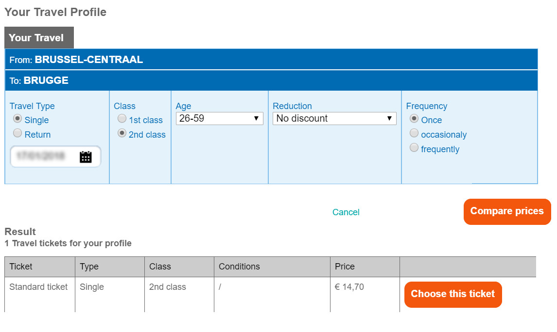 . Если вы моложе 25 лет, то стоимость любого билета между двумя города Бельгии 6€ за 2-й класс.