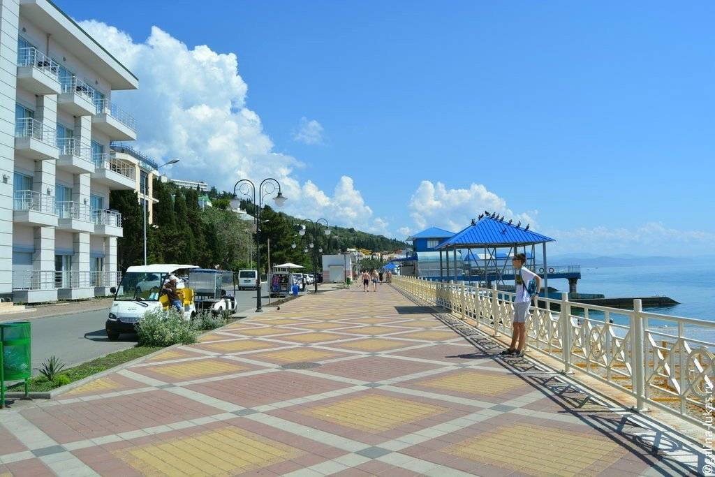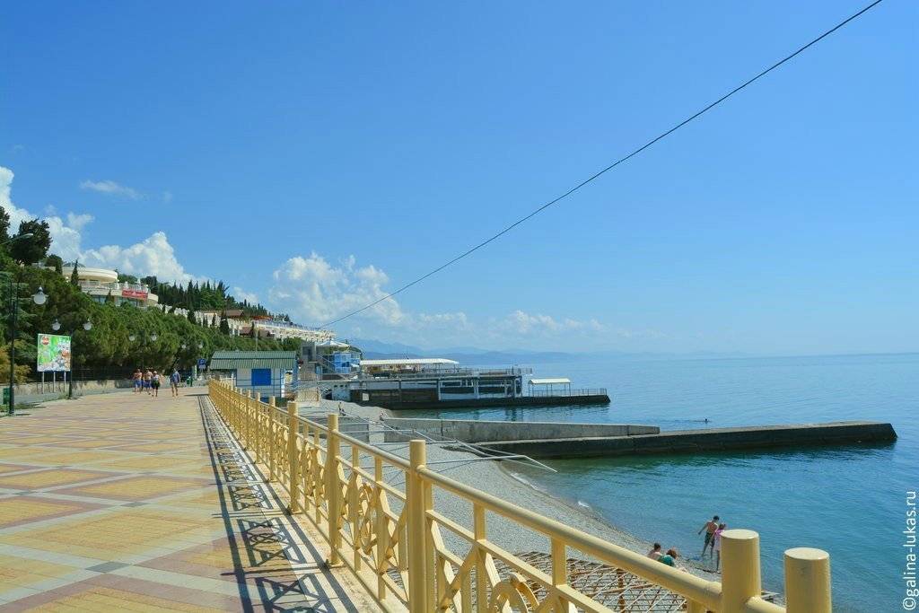 Благоустроенная набережнаясо скамейками для отдыха, небольшими пальмочками, цветами вьется вдоль моря до самой Алушты. Гулять здесь одно удовольствие: море рядышком, виды прекрасные, что ещё нужно для счастья?