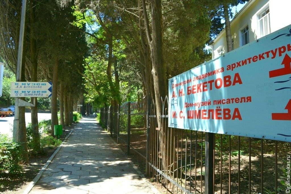 - На набережной Профессорского уголка можно также найти музей писателя Шмелева. Он представляет собой глинобитный дом с двумя комнатами и верандой.