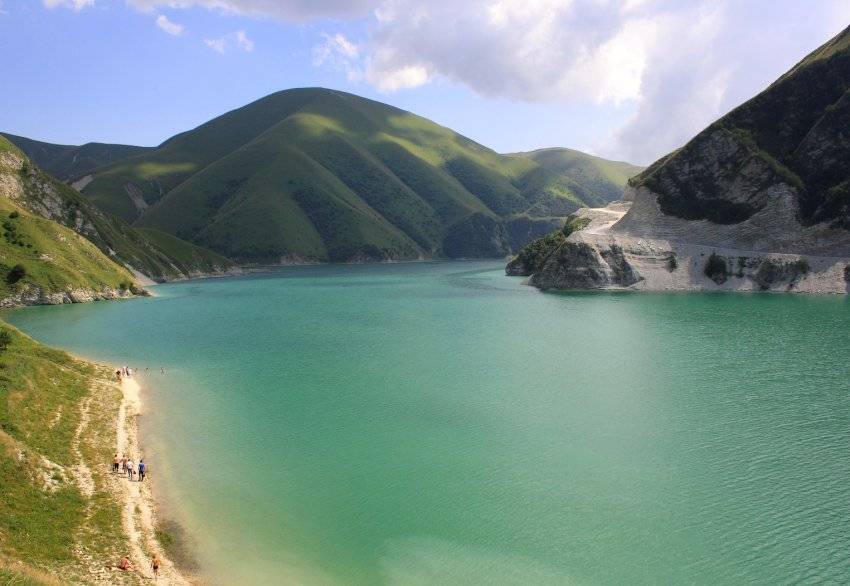 Самодельные экскурсии по Чечне горной, обязательно должны включать поездку на озеро Кезеной-Ам (оно стоит первым в списке восторженных откликов любителей живописной натуры). Природный резервуар кристально чистой воды доступен по шоссе из Ведено. Это – завальное озеро. То есть бассейн, образованный перекрытием ближайшей реки. В данном случае Сулака, убегающего в Дагестан. Площадь – до 2,3 квадратных километров. Так как водоем находится в зоне субальпийского пояса (на высоте 1854 метра), на некоторых его берегах уже нет деревьев – только высокогорная трава, мелкие цветы, а иногда снег. Впрочем, купаться тут можно – в разгаре лета вода прогревается до 18°С. Вдоль некоторых участков побережья выстроились комфортабельные (и не очень) базы отдыха. Сама ривьера кое-где оборудована для рискованного пляжного отдыха. Приезжайте, если вас не начнет тошнить на сложном серпантине за аулом Харачой.