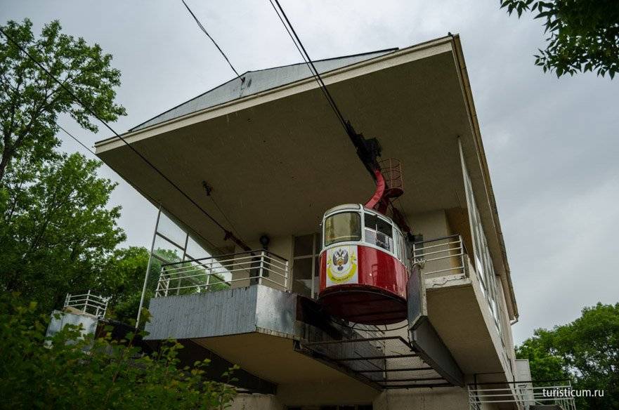 Совсем недалеко от Долины роз расположена нижняя станция канатной дороги, которая ведет на гору Красное солнышко. Канатка весьма старая, но действующая. По дороге курсирует только две кабинки, поэтому придется немного подождать следующего рейса.