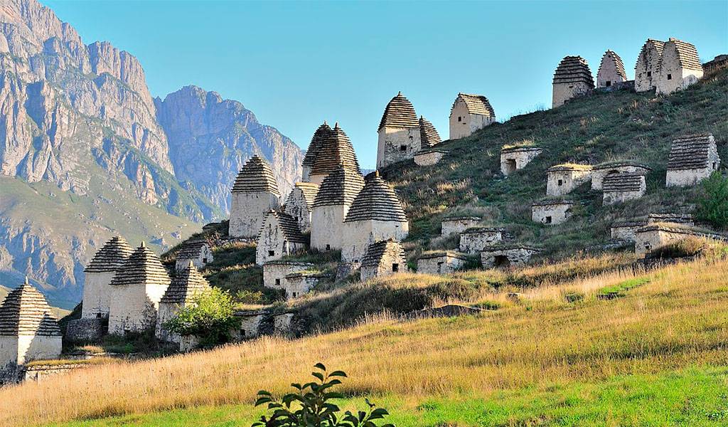 Даргавс – горное поселение, к которому ведет единственная дорога-серпантин. В километре от него расположено то, что на первый взгляд кажется обычной деревушкой. В действительности это настоящий некрополь, «город мертвых». Он находится на высоком и живописном горном склоне, открытом ветрам, и заметен издалека.