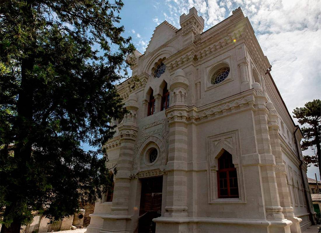 Молитвенный дом, где исповедуется одна из форм иудаизма — караимизм, построено в конце 19 века. Именно в то время община караимов в Крыме разрослась и прихожане организовали строительство. Величественное здание возведено с сочетанием мавританского, византийского и готического стилей.