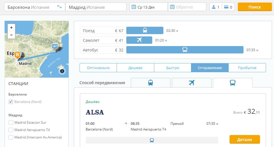 Для того, чтобы строить эффективные наземные маршруты по Европе, воспользуйтесь сервисом Omio ( бывш. GoEuro). Он показывает самые выгодные автобусы, поезда и самолеты и их расписание.