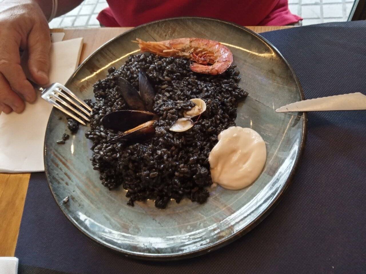 Стоимость обеда на человека: 10-30 евро (€). В будни есть специальное предложение – меню за 9,95 евро (€).Здесь тоже всегда стоит очередь людей, желающих недорого и вкусно поесть.Порции паэльи очень большие, можно взять одну на двоих.Готовят очень вкусно. Если вам не нужен хлеб, откажитесь заранее, его приносят без предупреждения и его стоимость включается в счет.Адрес ресторанчика: Passatge Escudellers, 1