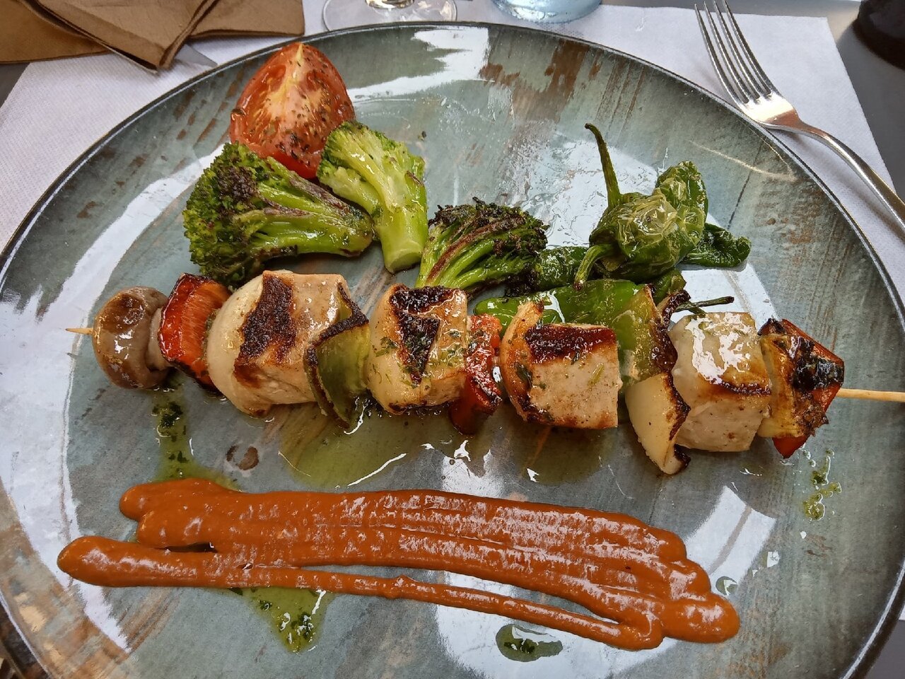 Супруга у меня предпочитает есть здесь просто восхитительный Морской Гребешок (Vieiras asadas con puré de celery y pistachos) за 21€. Если я не сильно голоден, то люблю побаловать себя фирменным супчиком из краба, «с дымком» (Sopa fría de Buey de Mar con un toque de humo) — 17€. Рекомендую попробовать их закуску из маринованной скумбрии с маракуйей (Tiradito de pescado de costa con ponzu de maracuyá) за 17€. Также есть 2 блюда которые я вам отчаянно НЕ советую заказывать! Татаки из тунца за 23€ и красные жареные креветки за 14€ — отстой полнейший.
