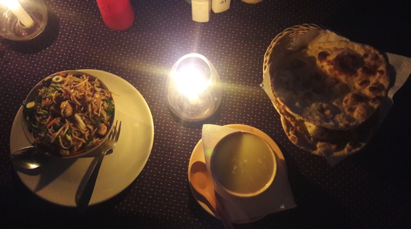 Всё остальное время мы питались в кафе в городе или я ходил за едой в ближайшее кафе. К сожалению, я не вел досконального бюджета. Скажу честно, ленились и кушали в округе мы редко. Если семейство не желало далеко идти, я просто брал еду на вынос. Тимофей полюбил непальские мо-мо (паровые пельмени) цена порции 100 рупий или 85 рублей. Мы же с Настей часто брали досу (огромный блин с начинкой, в нашем случаи чаще всего из сыра), бирьяни и конечно же различные виды приготовленного панира (молодой сыр). Такие ужины на вынос — это недорого и вкусно, поэтому мы практически каждый день два раза ужинали, но благодаря не высокой цене, потратили около 4000 рублей.