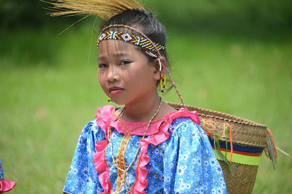 Филиппинская девочка в национальном костюме на празднике урожая Kadayawan