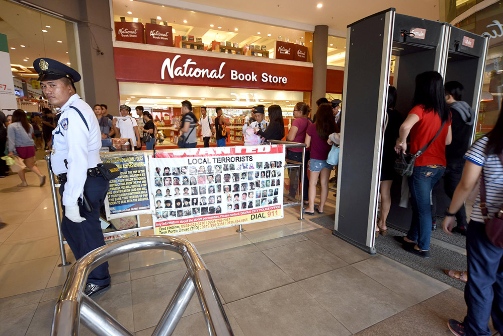 Охрана и рамка при входе в Gaisano Mall в Давао