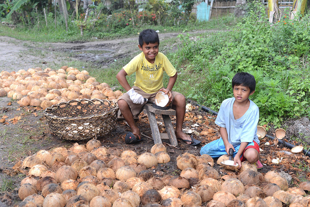 Мой сосед Алвин сдает кокосовую мякоть (копру) на фабрику по цене 21—25 песо (около 30 Р). Он не сам отвозит продукцию с его пальм на переработку, а работает с перекупщиками. Те скупают копру в деревнях и потом уже продают ее на фабрику. В районе Самала и Давао находится много перерабатывающих фабрик, например вот такая фабрика «Праймекс Коко».