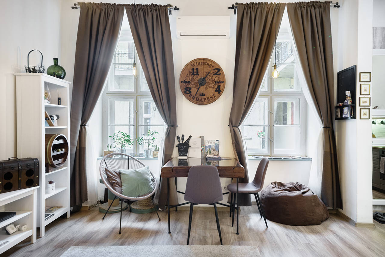 Подыскиваете район, где лучше остановиться в Будапеште? Удобные и красивые апартаменты находятся в шаговой доступности от делового центра города, который называют Сохо. Квартира примечательна винтажными окнами, моренными балками на потолке и раздвижными деревянными дверями, которые хозяин жилья и его отец сделали вручную.