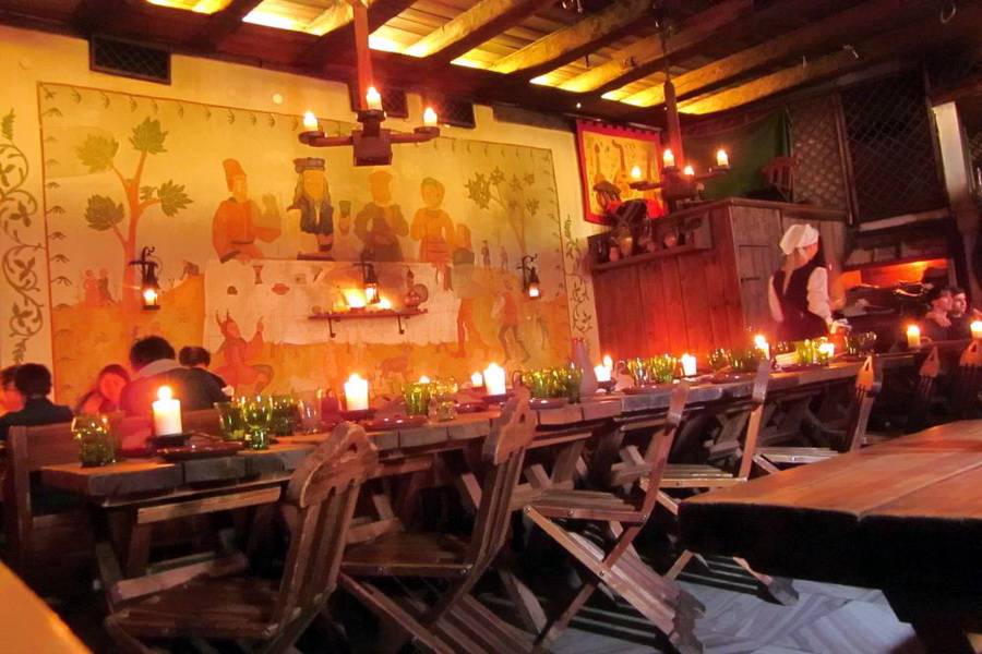 - темное пиво — 6 за бокал, домашнее вино — 8.