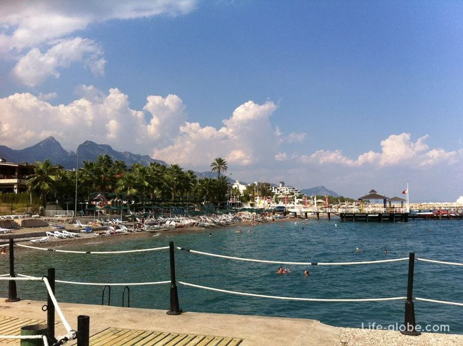 Галечные пляжи расположены почти по всему району Кемер, поэтому лучше заранее позаботиться о специальных тапочках для купания. Хотя пляжи отелей всегда имеют очищенный от неудобных камней участок для входа в воду или понтон/пирс