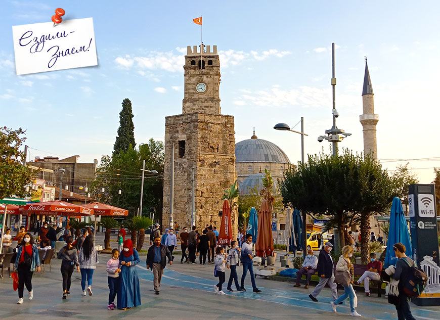 В Анталье симпатичный Старый город — Калеичи. Он сплошь состоит из уютных отельчиков, кафе, баров и магазинчиков. Там мы гуляли по узеньким улочкам, любовались старинными зданиями, глазели на восточные ковры в торговых лавках, смотрели на мечети и минареты, а в конце прошли через красивые ворота Адриана. Если приглядитесь, на мостовой под ними увидите древние следы повозок и лошадей!