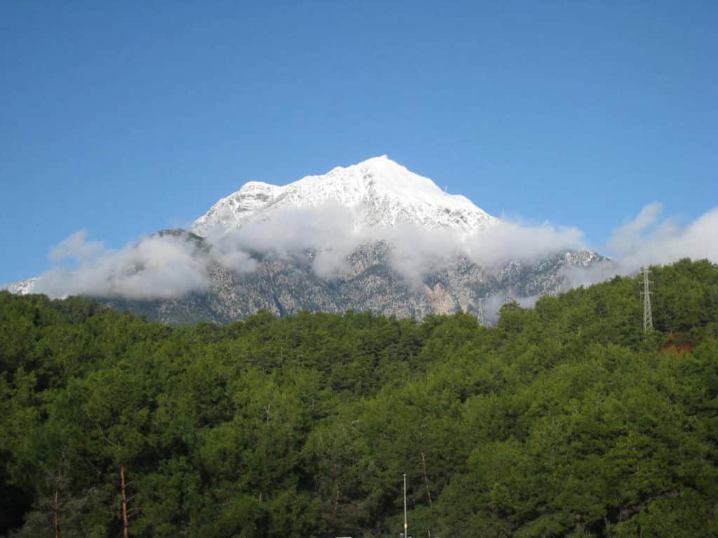 Следующее не менее значимое место считается гора Олимпос, местные называют эту гору Тахталы. Ее высота достигает почти 2,5 тыс. м., а с обзорных площадок открывается потрясающий вид.