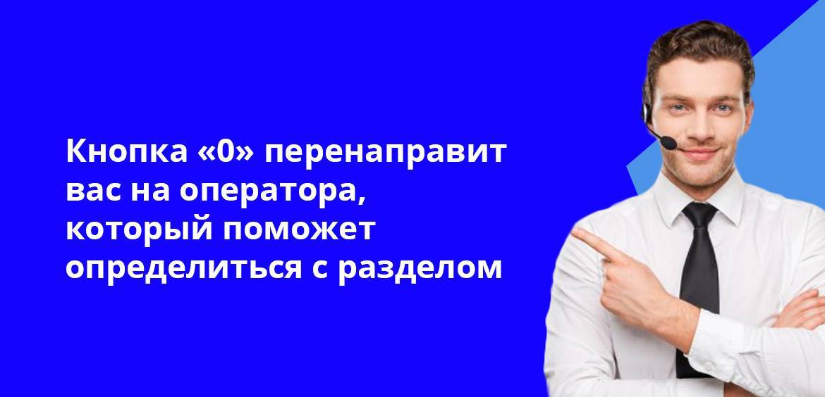 И в каждом разделе также может открывать свой классификатор, чтобы звонящий попал на нужного специалиста, который максимально компетентно ответит на вопрос. Если же вы не поняли, какой раздел вам нужен, тогда нажимайте “0”: оператор ответит в порядке очереди и перенаправит на нужного специалиста вручную.