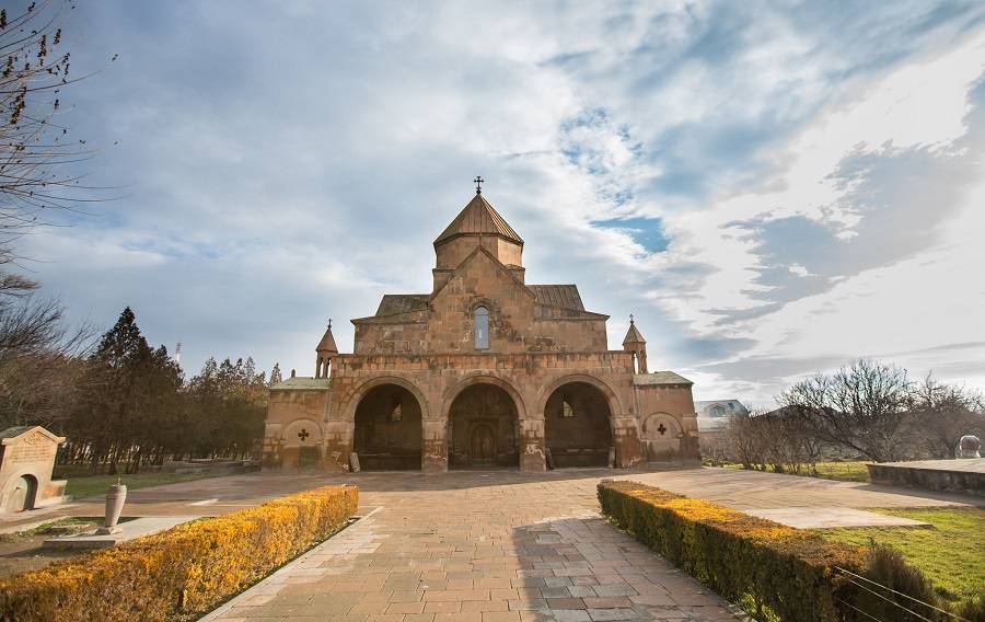 За спокойствием и умиротворением отправляйтесь в город Эчмиадзин. Дорога занимает 25 минут на маршрутке за 200 драмов (30 рублей на январь 2022) или на такси за 2500 драмов (400 рублей на январь 2022). Здесь находится культовое место для всех верующих армян — Эчмиадзинский Кафедральный собор и древние церкви, которые охраняет ЮНЕСКО.