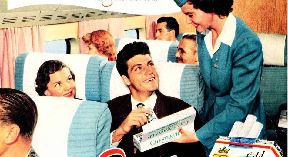Старая реклама сигарет. Когда-то в самолетах курить было можно