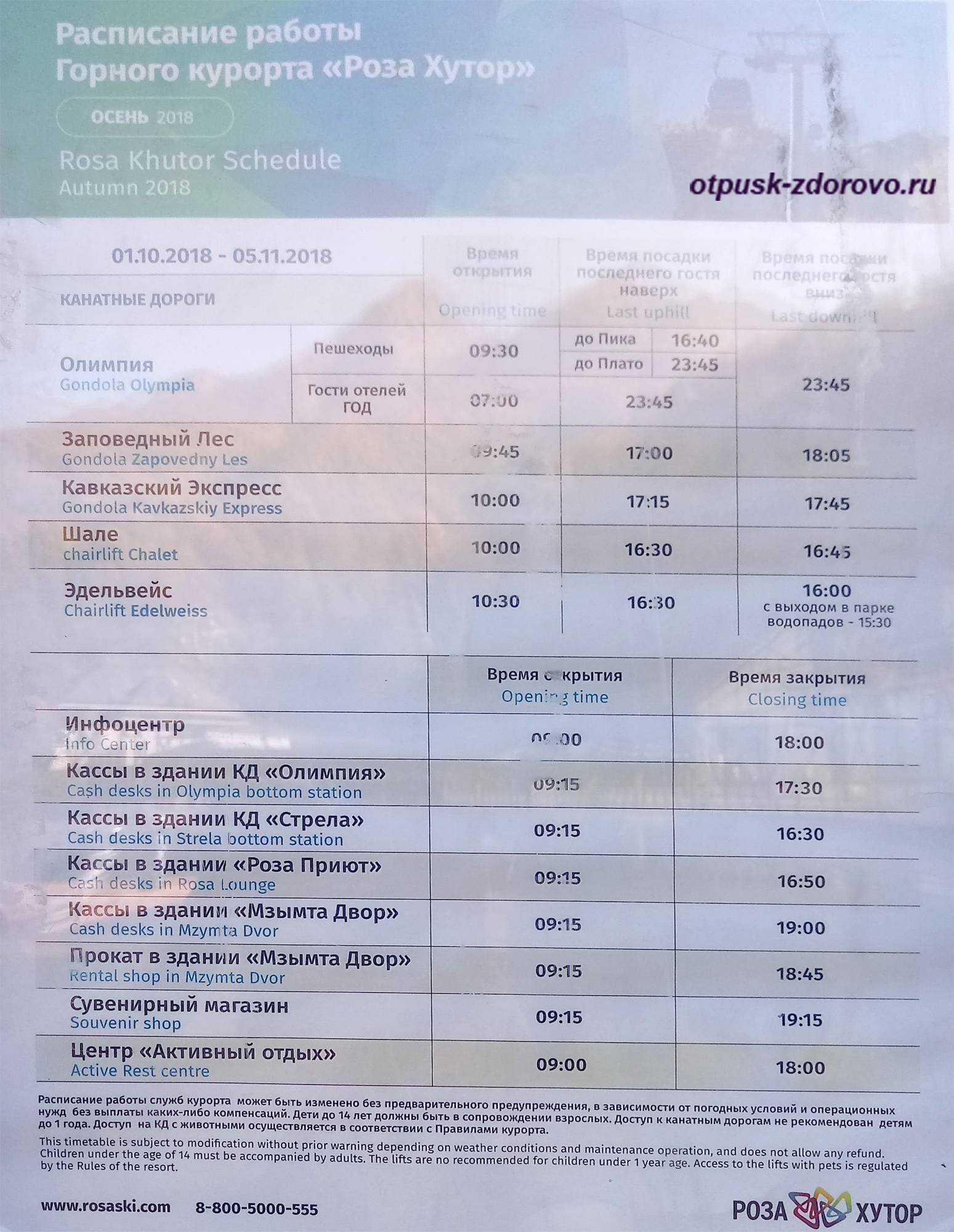 - Время спуска последнего гостя с Роза Пик без посещения Парка водопадов: 16.00