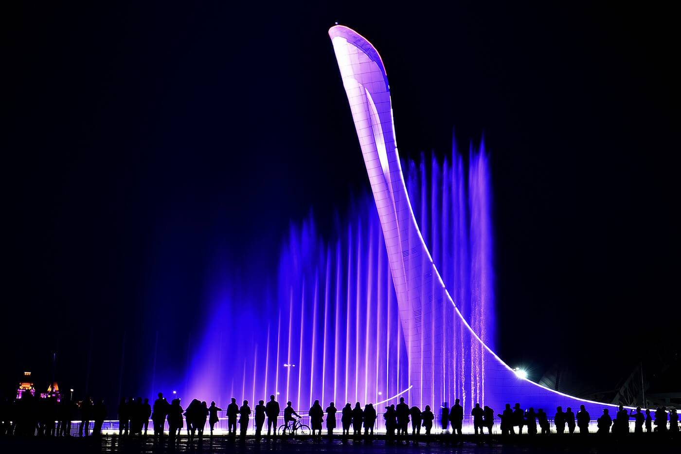 Это зрелище пропустить просто невозможно. Ради него сюда приезжают гости, отдыхающие в других городах и поселках Краснодарского края. Фонтан находится на Олимпийской площади – то есть в самом центре одноименного парка. Здесь, в чаше, горел Олимпийский огонь. Сам фонтан — круглой формы, вверх от него устремляется стела, высота которой 50 м. Огонь было видно издалека.