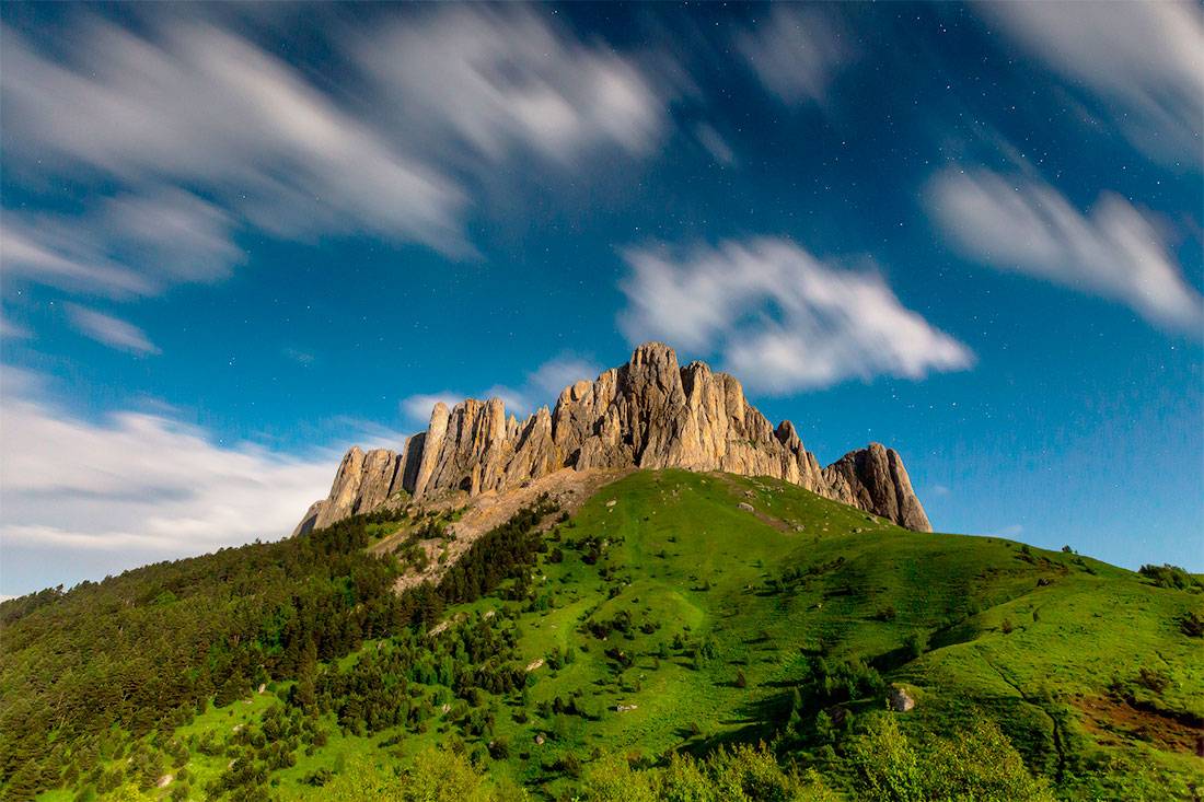 Большой Тхач – горный массив и одноименный природный парк в Адыгее. Он основан в 1997-м и внесен в список ЮНЕСКО. Самая высокая точка массива – 2 368 м. Вынесенное в название слово «тхач» переводится с адыгейского языка как «вечно молодой бог».