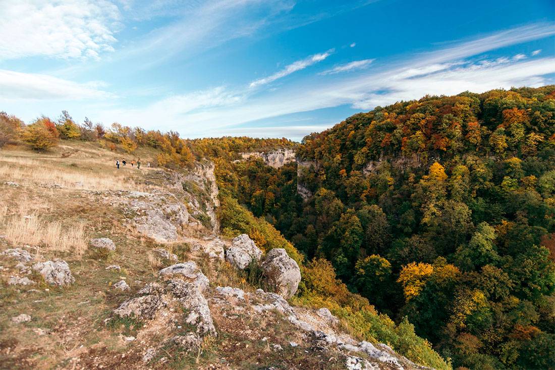 По этому глубокому ущелью регулярно проходит маленький, четырехвагонный поезд. Этот экскурсионный маршрут протяженностью 2 км – все, что осталось от десяти километров пути по узкоколейке, построенной для перевозки леса и не выдержавшей лавин и осыпей. Впрочем, сейчас все безопасно, а протяженности маршрута хватит, чтобы оценить горные виды. Это необычная достопримечательность Адыгеи, подходящая тем, кто путешествует самостоятельно. Надо отметить, что отзывы на прогулки по ущелью только положительные: отмечают интересные маршруты для треккинга к Монаховой пещере и мимо водопадов («Сектор Матузка»), атмосферу места и спокойствие в «нетуристической части».