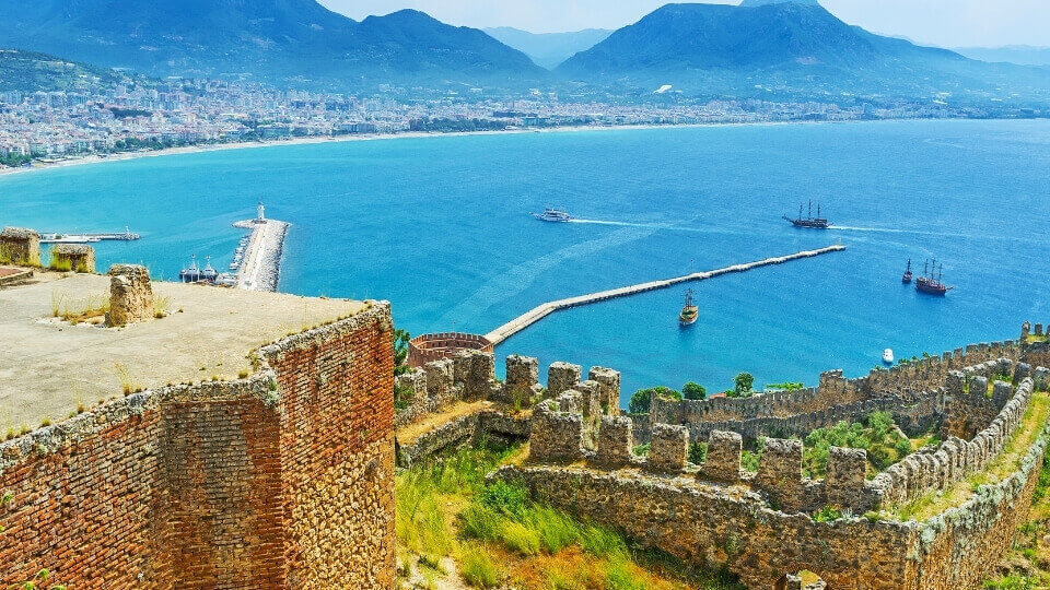 И начнем мы со скалистого полуострова Аланьи, на котором находится потрясающий замок, окруженный 6-километровыми стенами. Поднимаясь к нему по крутым улочкам района Топхан, вы сможете насладиться прекрасной панорамой города.
