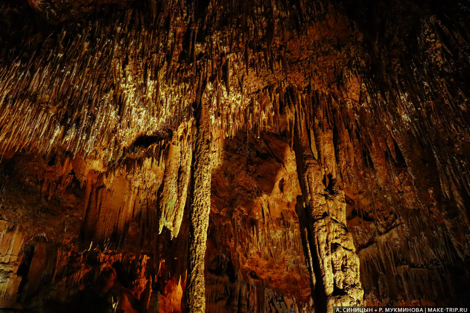 Круглый год температура в пещере +23 градуса и очень высокая влажность 98 %. Внутри как-то все сыро, но при дыхании ничего не ощущаешь. Жалко, что фото не может все передать из-за особенностей освещения пещеры.