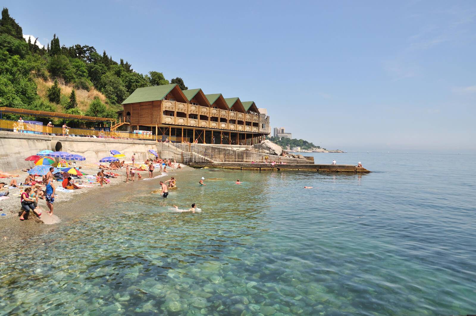 Пляжи в Алупке галечные, очень узкие, всего их около 30. Часто на пляже некуда спрятаться от солнца — вокруг только скалы, поэтому захватите с собой зонтик.