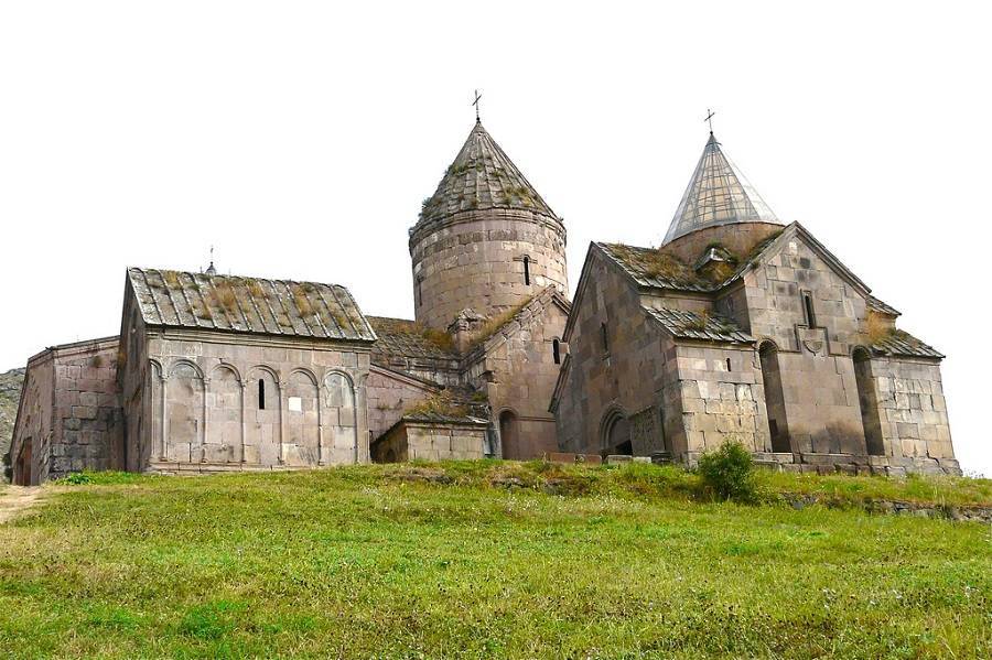 Покидаем Дилижан и двигаемся далее по шоссе к новым изумительным пейзажам — в Гошаванк, еще один древний комплекс XIII века постройки (сам монастырь, часовня и скрипторий). Монастырь находится прямо в горном селе и впечатляет искусной резьбой по камню и традиционным для армянских монастырей аскетизмом. Кстати, храм комплекса по-прежнему действующий, и здесь можно увидеть своими глазами, как проводится таинство венчания.