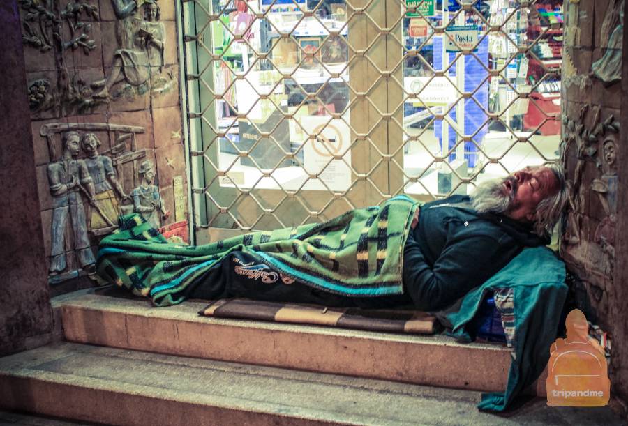 Их вы встретите везде: в переходах метро, на вокзалах, под крытыми галереями зданий в самом центре города или просто у входа в закрытый на ночь магазин. Они могут стирать что-нибудь в фонтане рядом с храмом, просить милостыню с пластиковым стаканчиком в руках или просто спать, закутавшись кто во что горазд. Я видел бомжей, играющих в карты, читающих при свете свечи, мастерящих поделки для последующей их продажи, пьющих, ругающихся и просто наблюдающих за прохожими.