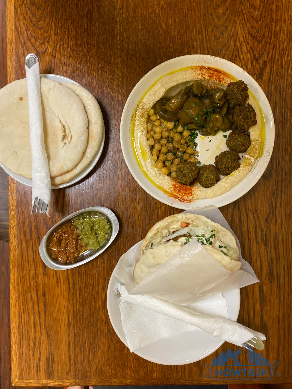 А так выглядит еда в Хумус баре — фалафель и шаверма