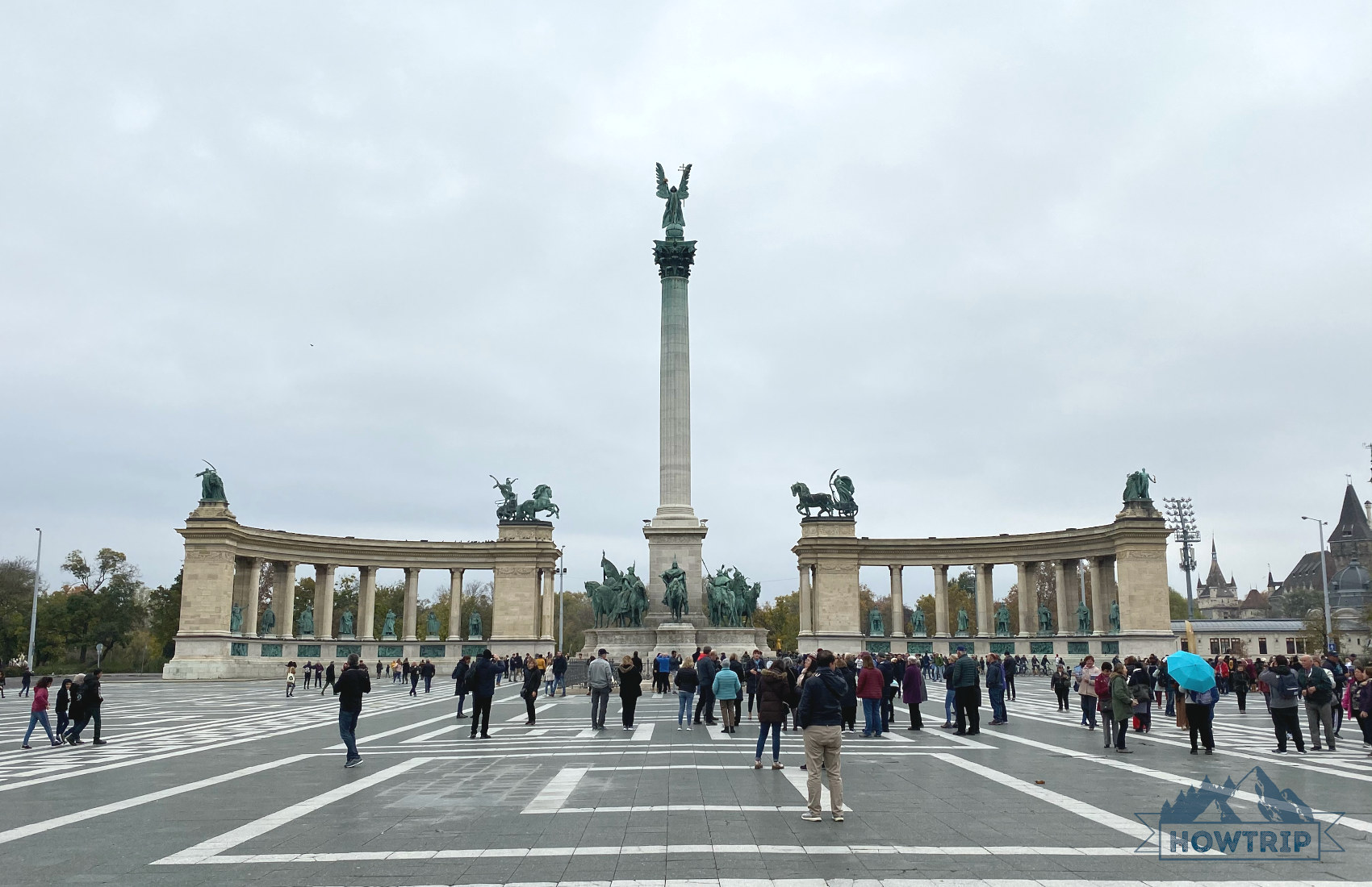 Проспект Андраши выходит прямиком на Площадь героев. По виду – это как парк Победы в любом российском городе. Много пространства и высоченный памятник, только в Будапеште на Площади героев – это памятник Тысячелетию Венгрии.