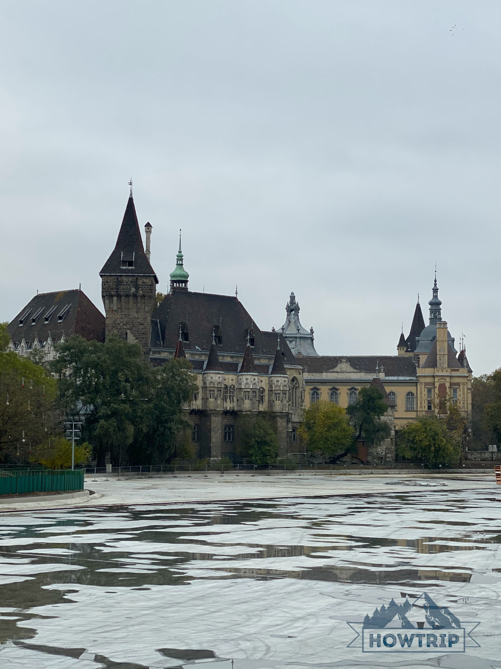 - Замок Вайдахуняд с парадной стороны построен на берегу рукотворного озера, часть которого зимой превращается в каток