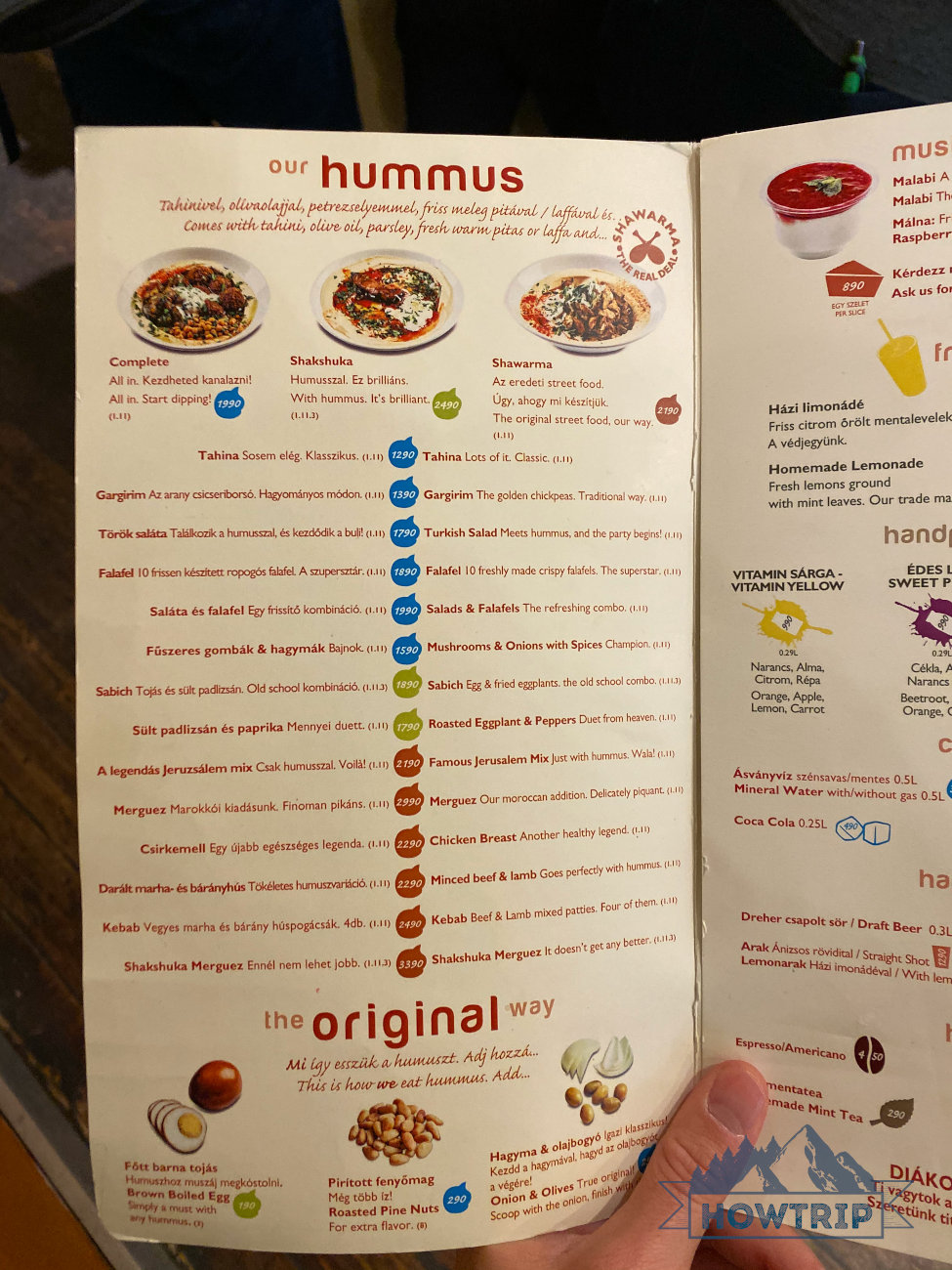 - Hummus Bar – сеть хумусных по Будапешту, неплохо! Можно сытно поесть на двоих на 500 рублей (фалафель – 225 рублей, шаверма – 250 рублей). Но только если вы уважаете израильскую кухню:)