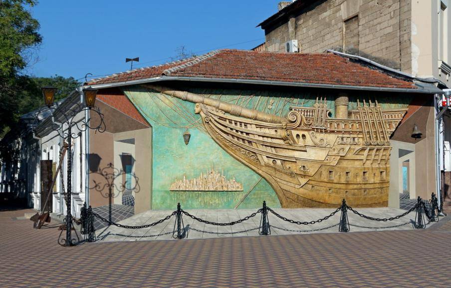 Панно «Бригантина» на торце дома по ул. Галерейной туристы замечают издалека. Вот уже много лет внутри располагается музей А. Грина. Это музей-корабль, странствующий во волнам среди островков и архипелагов фантастической Гринландии. Даже если дети еще не успели познакомиться с творчеством Александра Грина, в музее им непременно понравится.