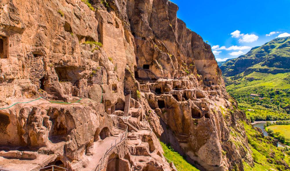 - Вардзия – наиболее известный из грузинских пещерных монастырей, но и наиболее удалённый, поскольку расположен ближе к армянской и турецкой границам. Но при выезде из Тбилиси, Батуми или Кутаиси можно уложиться в один день, продолжая затем путешествие к другим достопримечательностям.