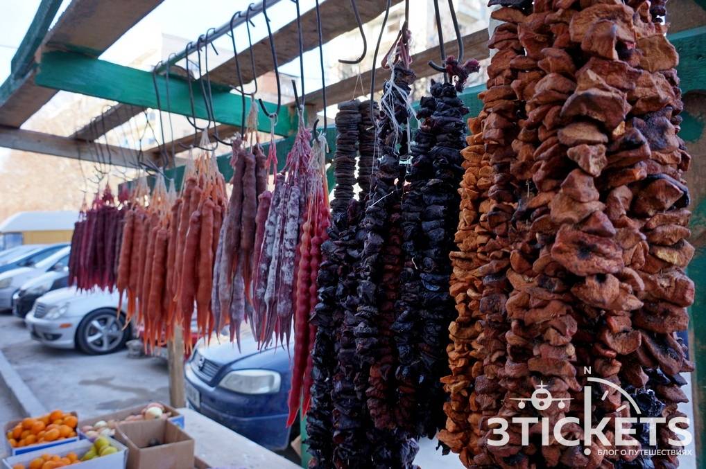 Тут можно приобрести ароматные специи, чурчхелу, соусы, домашние вина, сыры, фрукты, орехи, мясо и многое, многое другое, причем торговаться и пробовать каждый продукт — обязательное условие приобретения товаров.