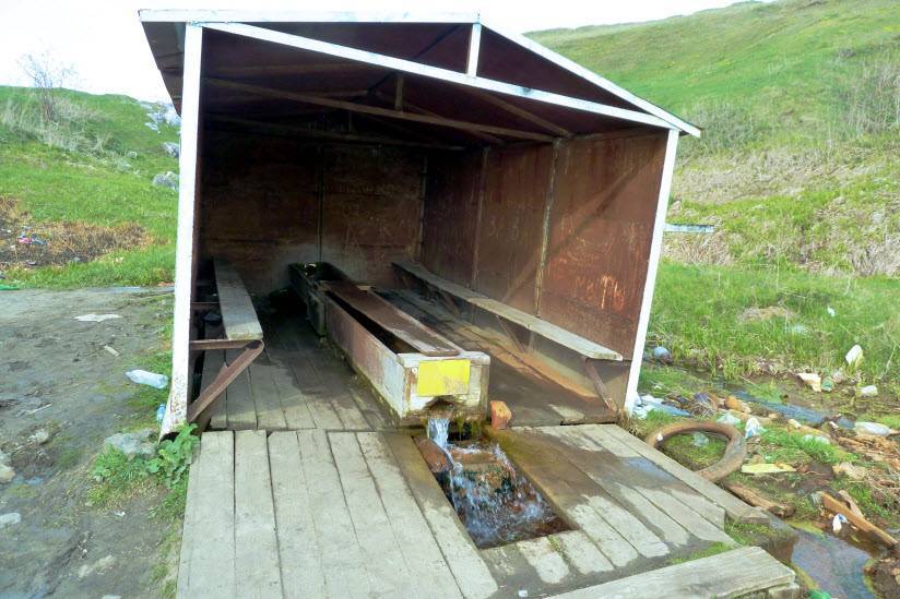 Уникальное природное творение — здесь из разлома течет чистая вода всегда 18-ти градусной температуры, и даже зимой вокруг ключа растет зеленая трава.
