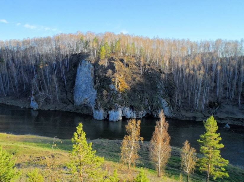 Скала на реке Исеть в деревне Щербаково в окрестностях Каменска-Уральского.