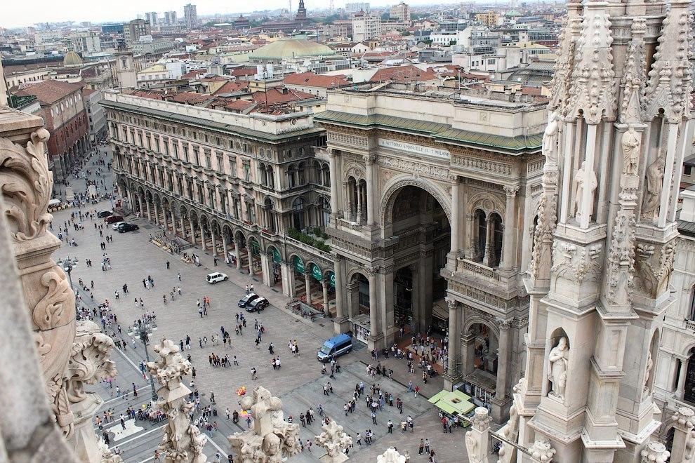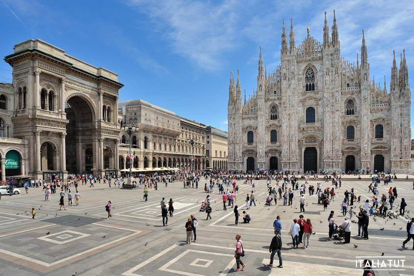 Пьяцца дель Дуомо (Piazza del Duomo) — первое, что стоит посмотреть в Милане. Это площадь с готическим собором белого мрамора, который украшен сотней остроконечных шпилей и 3,5 тысячами скульптур. Возведение собора началось в конце 14 столетия и продолжалось почти 500 лет.