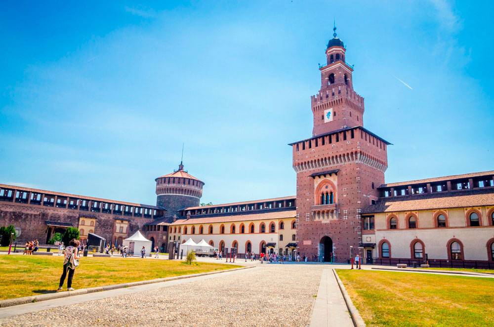 Представители династии Сфорца были миланскими герцогами и благодаря их деятельности Милан стал культурным центром Средневековой Европы. Замок представляет собой их резиденцию. Внешний вид крепостных стен и башен напоминает Московский Кремль. Тот же красный кирпич, зубчатая стена и форма башен. Сегодня внутри замка располагается несколько исторических музеев с богатой коллекцией. Здесь можно посмотреть работы Микеланджело. Приятный бонус для посетителей: за час до закрытия вход бесплатный.