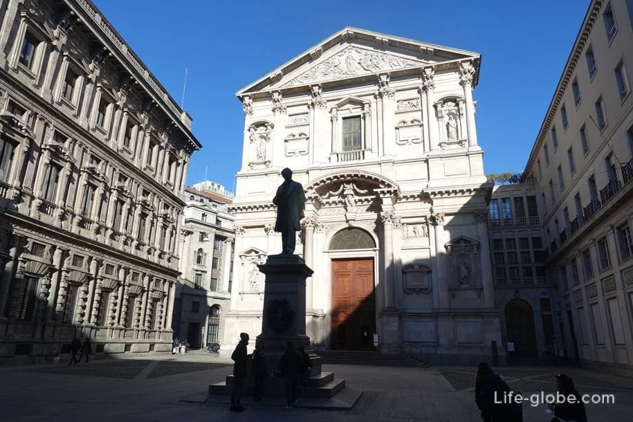 – католическая церковь Сан-Феделе (Chiesa di San Fedele), построенная в 16-м веке по приказу Святого Чарльза Борромео для размещения Общества Иисуса.