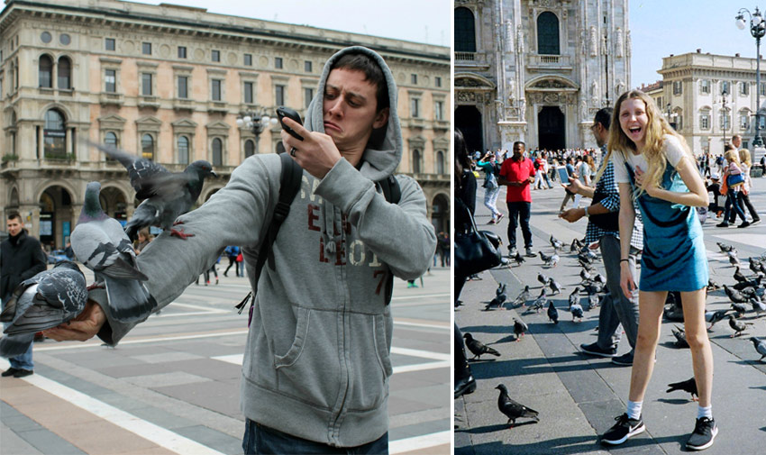 Не забудьте заранее взять с собой немного… хлеба, чтобы на площади Дуомо перед Миланским Собором сделать такие вот фотки: