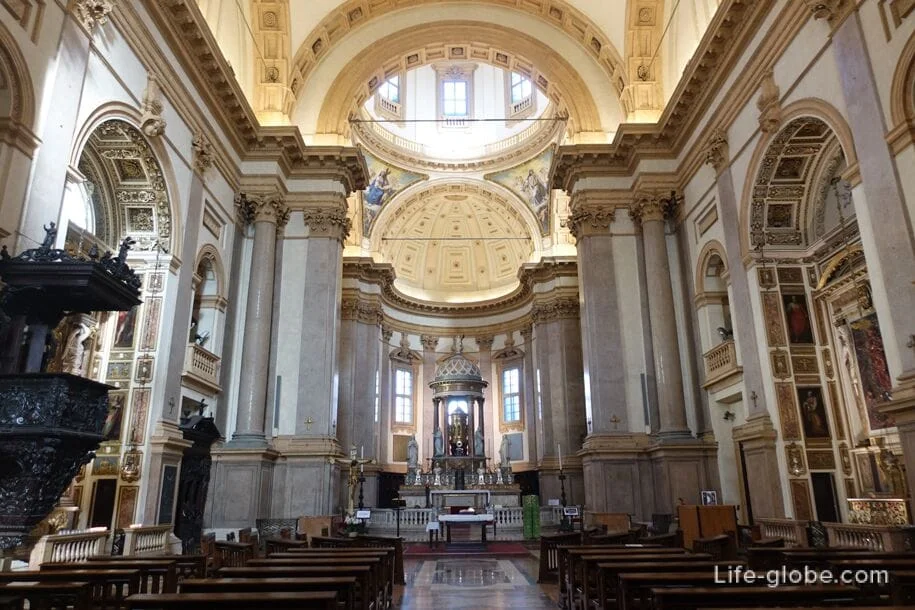 Одна из таких церквей — Сан-Маурицио, построена еще в XVI столетии. Раньше здесь находился женский монастырь бенедиктинок. Лучшие итальянские мастера расписали церковь изнутри. В настоящее время здесь находится археологический музей.
